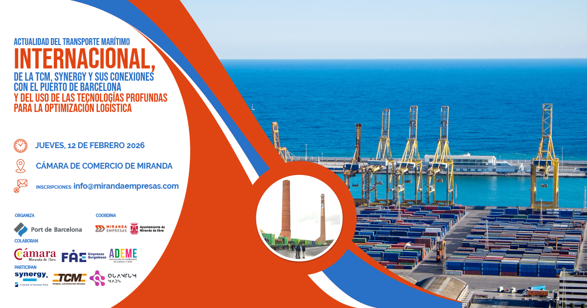 La jornada, organizada por el Puerto de Barcelona y coordinada por Miranda Empresas, con la colaboración de la Cámara Oficial de Comercio, Industria y Servicios de Miranda de Ebro, FAE Miranda y ADEME, permitirá a los asistentes conocer de primera mano unos servicios que pueden derivar en un sustancial ahorro de recursos, costes y tiempos de tránsito en las operaciones logísticas de las empresas que los utilicen.