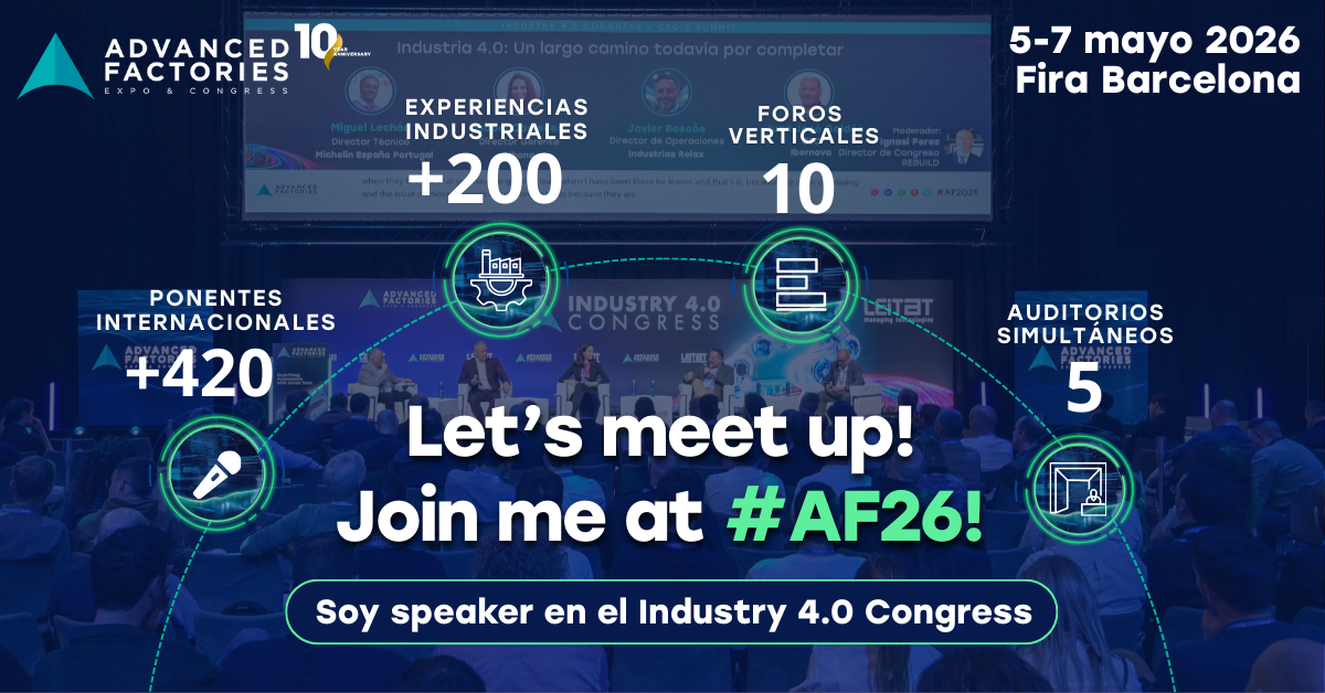 Si tu objetivo es mejorar la productividad, automatizar procesos o avanzar en la digitalización de tu planta, Advanced Factories 2026 es la cita clave del año. Del 5 al 7 de mayo, +33.000 profesionales industriales se darán cita en Barcelona en una edición que celebra 10º aniversario del evento, consolidado como el gran punto de encuentro de la industria avanzada.