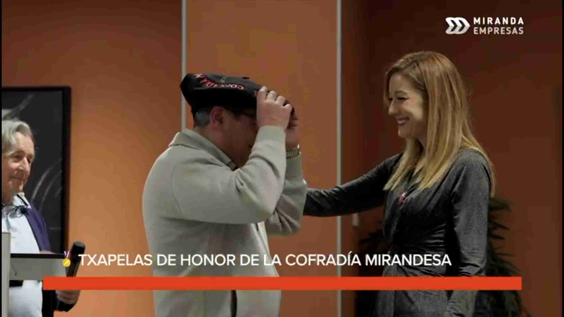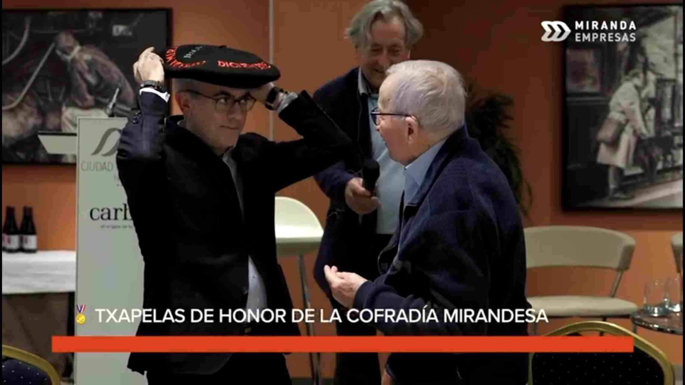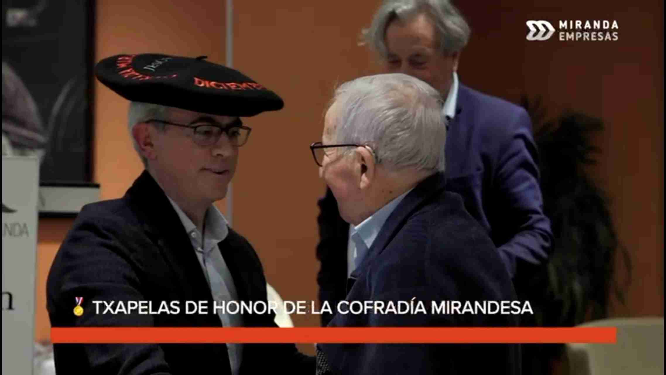 Miranda reconoce el talento, la trayectoria y el compromiso con la ciudad a través de la entrega de las Txapelas de Honor de la Cofradía Mirandesa de Bilbao.
