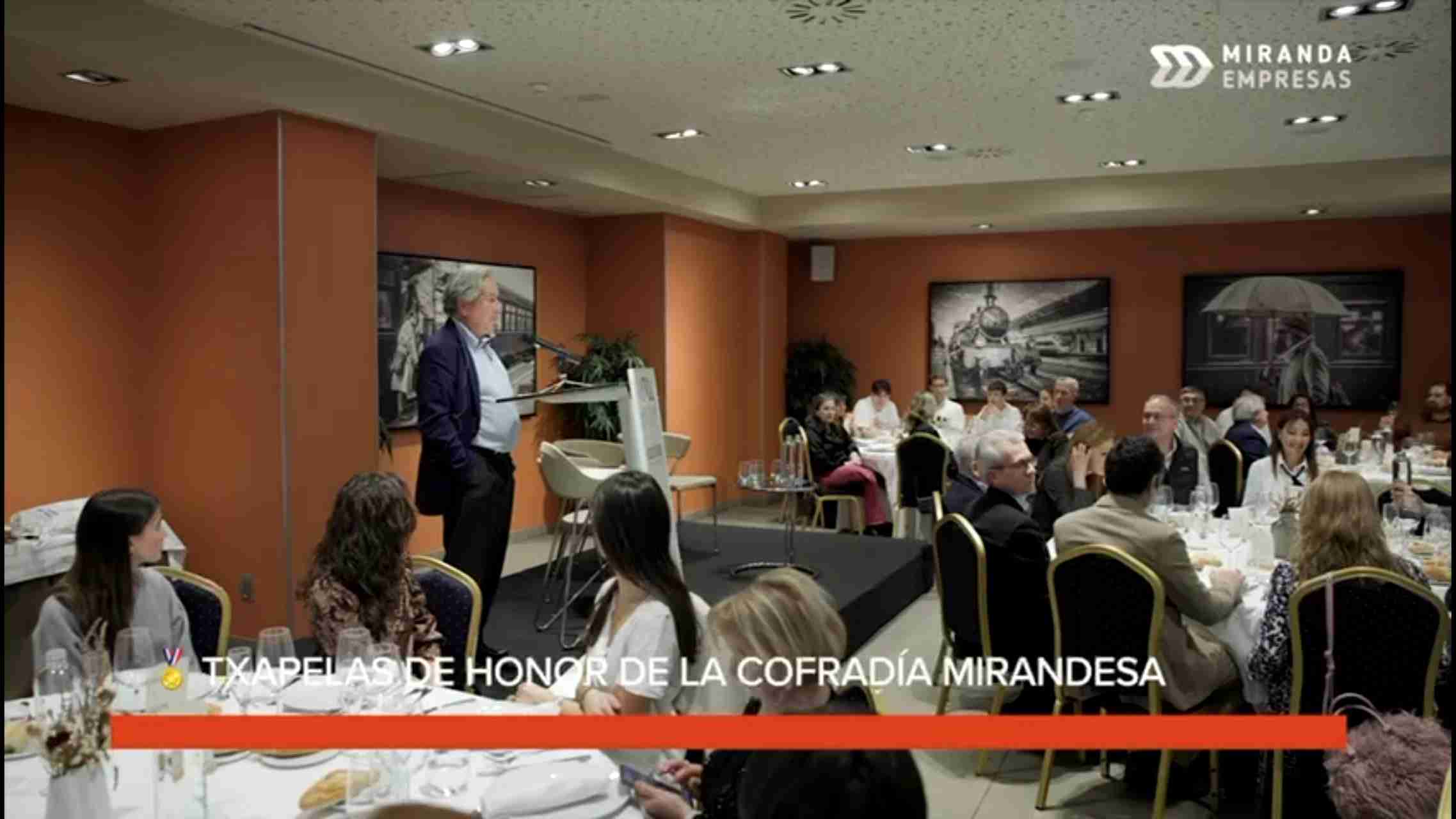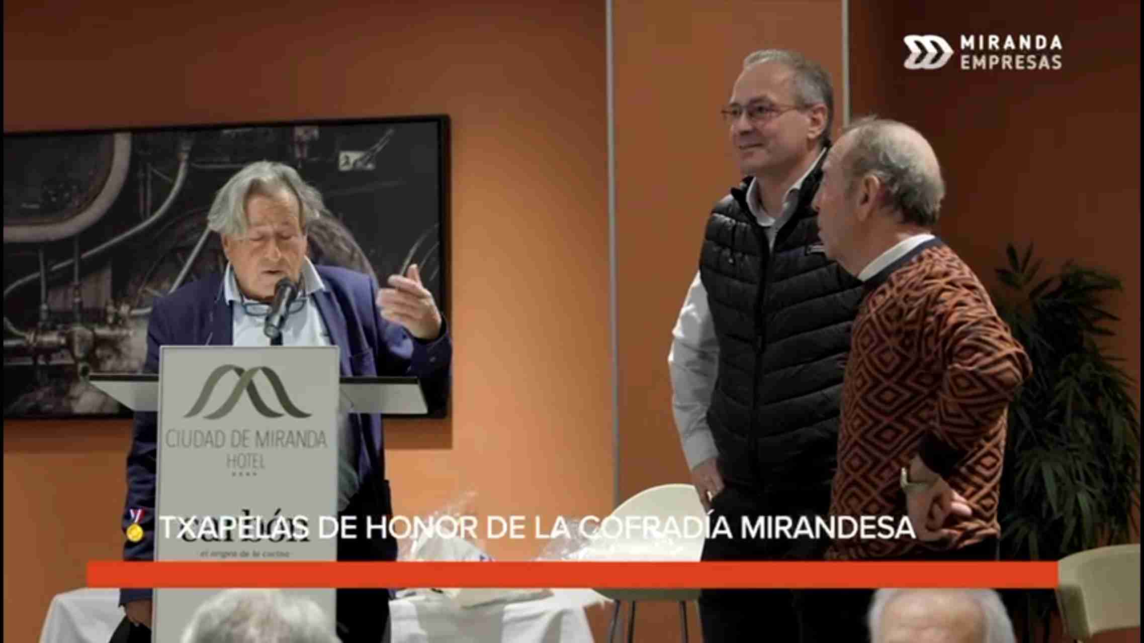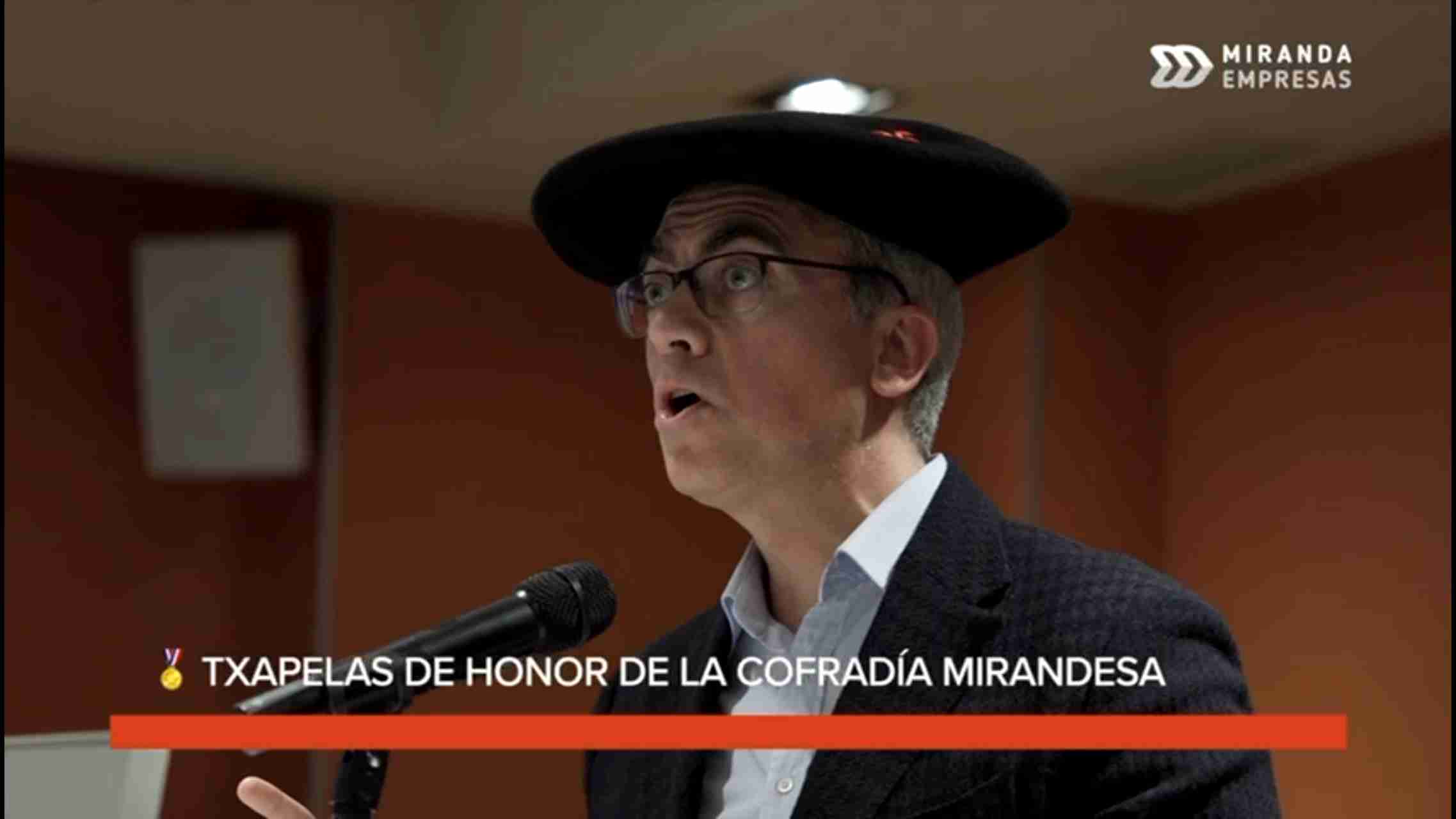 Miranda reconoce el talento, la trayectoria y el compromiso con la ciudad a través de la entrega de las Txapelas de Honor de la Cofradía Mirandesa de Bilbao.