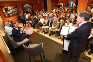 A continuación, se ha llevado a cabo una mesa redonda con varios empresarios ofreciendo sus experiencias. La alcaldesa de la ciudad, Aitana Hernando, también ha dedicado algunas bellas palabras a los homenajeados antes de que éstos fueran subiendo a recoger su distintivo. El emotivo acto ha concluido con un cóctel que ha servido de espacio de encuentro entre los homenajeados, autoridades y miembros del Club Cámara.