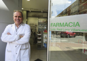 Raúl Losa, a las puertas de la farmacia que fundó en el 2000 con su apellido. – Foto: Ó.C.